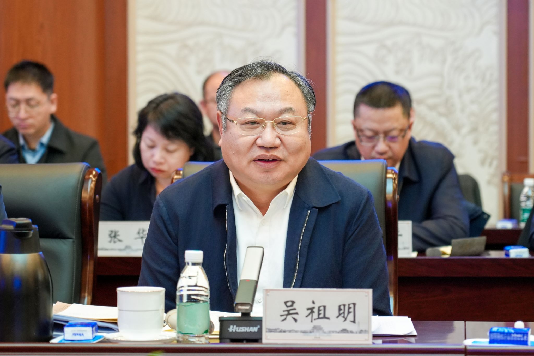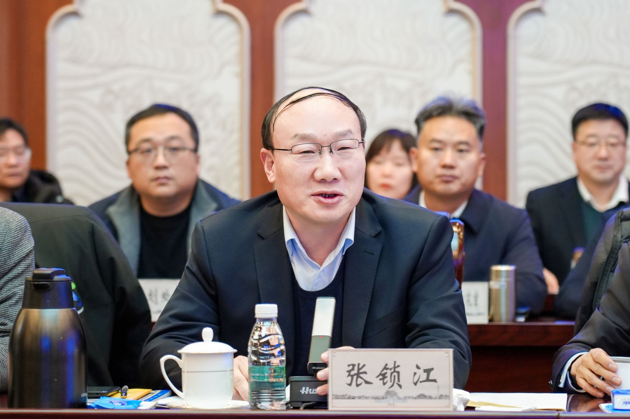 张锁江表示,新年伊始,吴祖明主任带领各位企业家到河南大学调研并指导工作,充分表明了省国资委和各省管企业对河大发展及河大新工科建设的大力支持,对此表示衷心感谢。他简要介绍了河南大学历史沿革与发展脉络,深入分析了当前学校发展面临的战略机遇:一是党的十八大以来,党和国家提出教育科技人才一体发展战略;党的二十届四中全会明确提出,要培育壮大新兴产业和未来产业;二是人工智能技术加速迭代演进,深刻改变着人类的底层逻辑和科教范式;三是学校正处于“双一流”“双航母”战略叠加的关键历史时期,国家战略重大计划和河南省十大产业行业提质升级行动计划相继出台,为河大新工科新医科新兴交叉学科发展提供了前所未有的机遇。在此背景下,河大确立了“强理振文、新工新医”办学新主线,全面实施新工科“9+3”战略布局,加速形成“文理工医”四轮驱动发展新格局。
